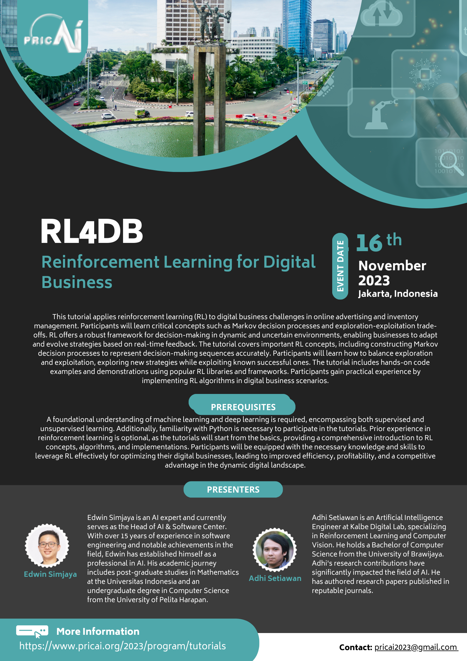 Equipped with the knowledge and skills gained from the tutorials, participants can boost efficiency, increase profitability, and gain a competitive advantage in their specific industries. The tutorials aim to produce well-prepared digital business professionals to adopt RL as a robust decision-making tool, positioning themselves at the forefront of innovation in the constantly evolving digital domain.